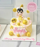 Bánh sinh nhật 1 tuổi bé gái kèm icon mặt cười ngộ nghĩnh [MS: 12800]