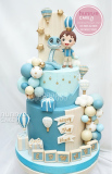 Bánh sinh nhật 2 tầng bé trai hình con rắn và khinh khí cầu – Sang trọng, độc đáo và may mắn tặng bé trai 1 tuổi [MS: 12882]