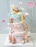 Bánh sinh nhật 3 tầng gấu nâu cho bé gái 1 tuổi [MS: 12802]