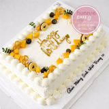 Bánh sinh nhật hình chữ nhật trang trí xoài tươi và bánh quy hiện đại