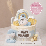 Bánh sinh nhật hình con rắn cho bé trai 1 tuổi mẫu em bé ngủ dưới cầu vồng