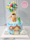 Bánh sinh nhật phim Up với chùm bóng sắc màu đẹp tặng bé trai 1 tuổi yêu thích phưu lưu [MS: 12913]