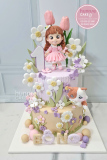 Bánh sinh nhật bé gái 4 tuổi chủ đề cầu vồng và thỏ con [MS: 13101]