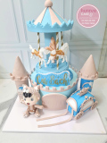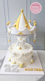 Vòng quay hạnh phúc: Bánh sinh nhật đu quay ngựa gỗ sang trọng cho ngày thôi nôi của bé [MS: 13073]