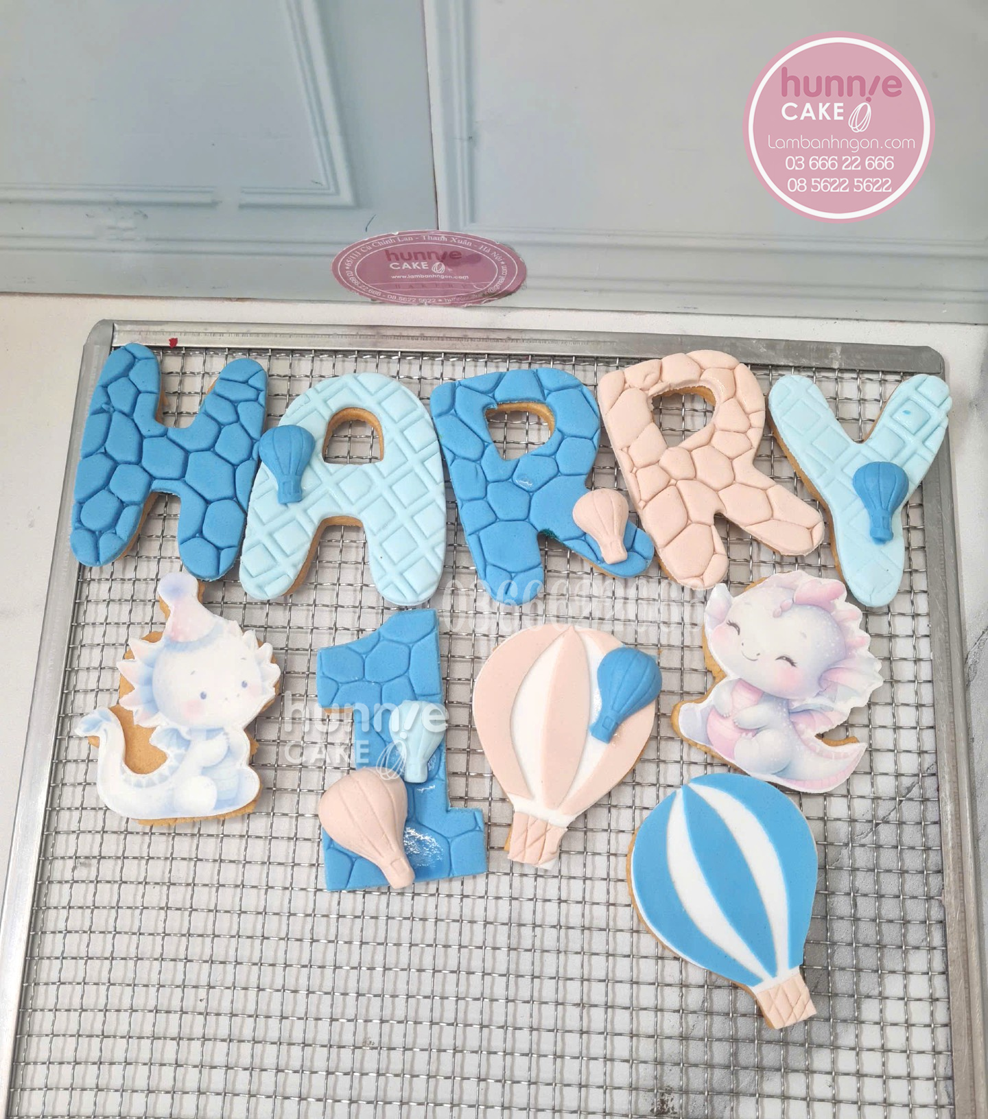 Hashtag: #HunnieCake #Lambanhngon #CookiesSinhNhat #BanhThoiNoi #TrangTriTiecSinhNhat #CookiesTheoTen #BanhQuyNgheThuat #Happy1stBirthday #KhinhKhiCau #RongCon