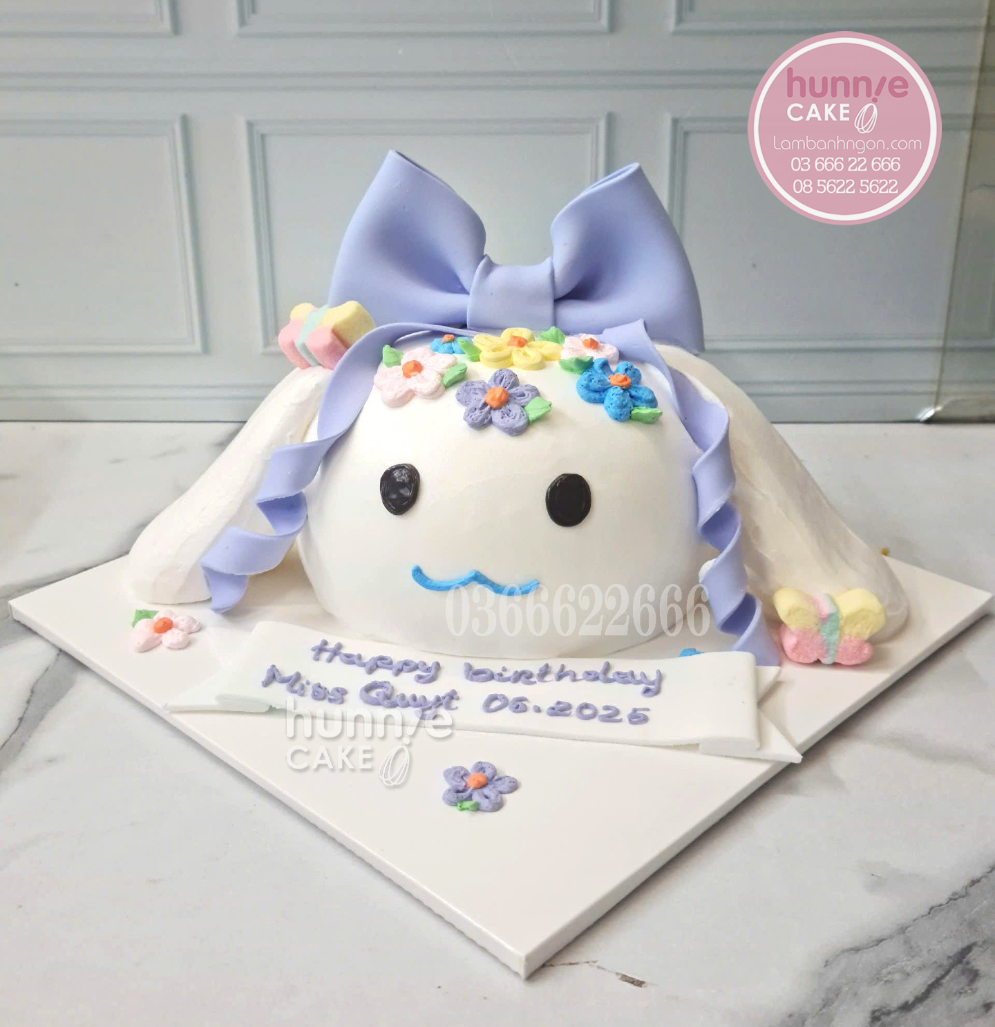 ĐẶT BÁNH NGAY hôm nay để sở hữu chiếc Bánh sinh nhật Cinnamoroll đeo nơ hoa đẹp, độc đáo từ Hunnie Cake! Liên hệ hotline 0366622666 hoặc truy cập website Lambanhngon.com để được tư vấn chi tiết.