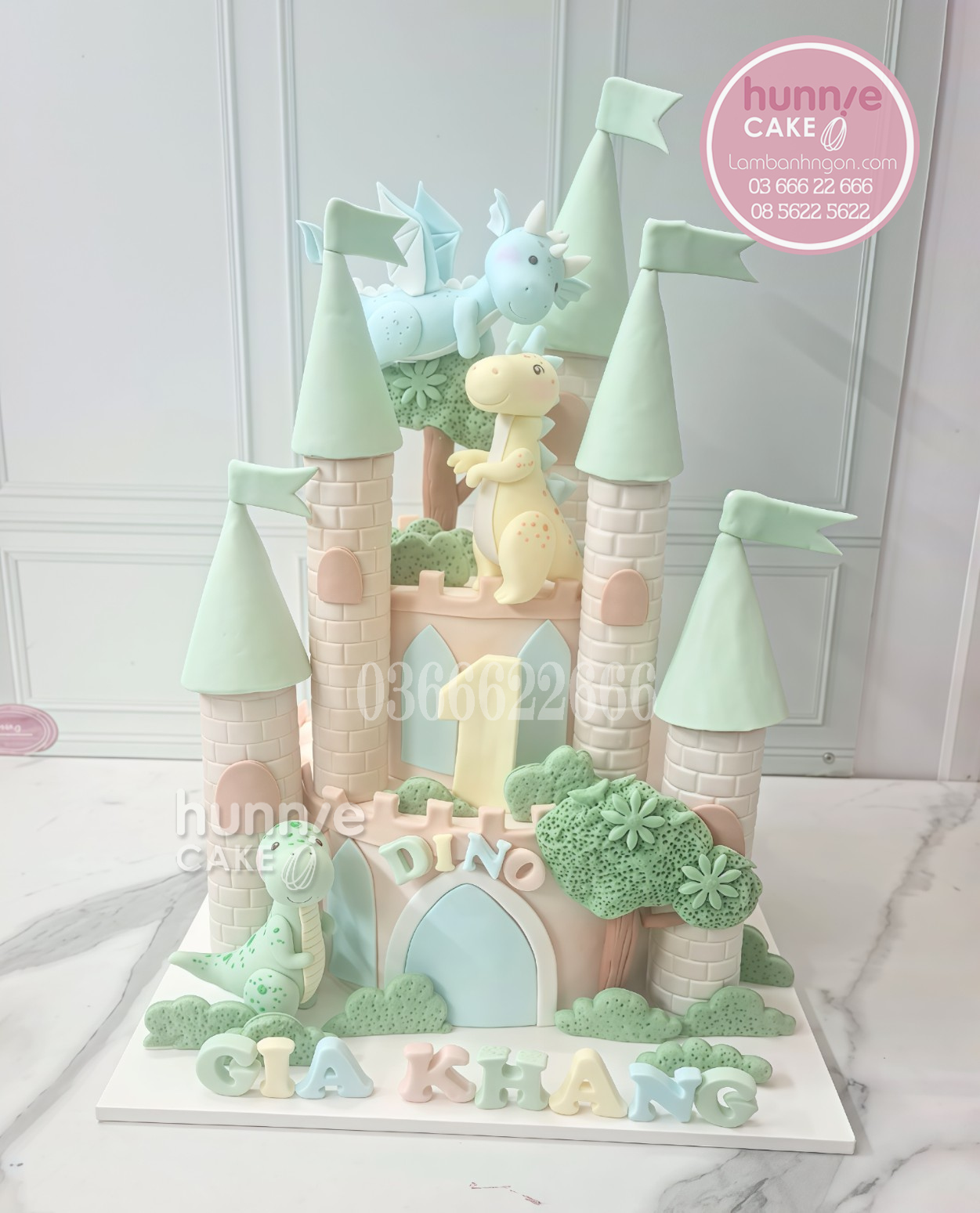 Bánh Sinh Nhật Fondant Lâu Đài Con Rồng Tặng Bé Trai 1 Tuổi – Thiết Kế Cao Cấp cho tiệc thôi [MS: 13022]
