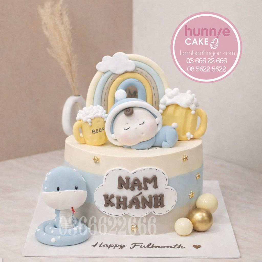 Ý nghĩa của chiếc bánh Mỗi chi tiết trên bánh đều mang một thông điệp riêng. Cầu vồng tượng trưng cho những điều tốt đẹp và hy vọng sau những khởi đầu mới. Hình ảnh chú rắn nhỏ thông minh đồng hành cùng em bé đang ngủ tượng trưng cho sự bảo vệ và bản mệnh may mắn cho các bé trai tuổi Tỵ. Đây là món quà hoàn hảo để ba mẹ lưu giữ những khoảnh khắc đáng nhớ trong lễ đầy tháng hoặc sinh nhật đầu đời của con.