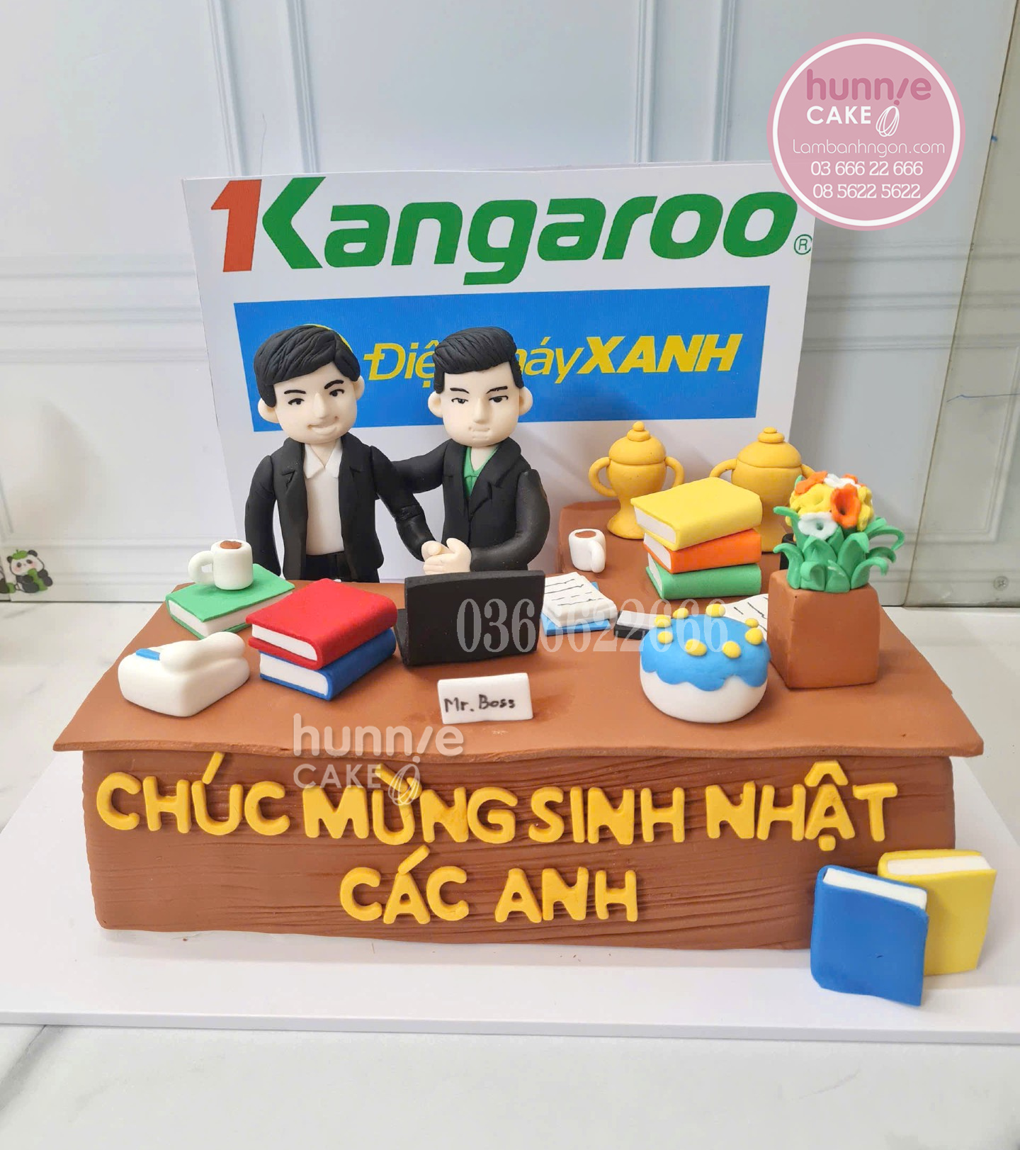 bánh sinh nhật sếp nam đẳng cấp có logo công ty, bánh sinh nhật fondant tặng sếp nam đẹp, mẫu bánh sinh nhật sếp nam độc đáo tại Hà Nội, bánh sinh nhật bàn làm việc tặng sếp, đặt bánh sinh nhật sếp nam theo yêu cầu tại Hunnie Cake