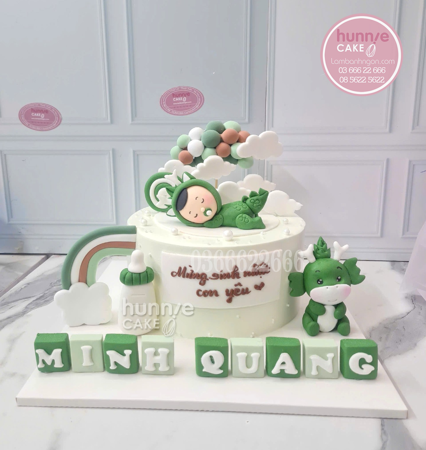 Từ khóa dài: Bánh sinh nhật tuổi rồng bé trai Hunnie Cake thiết kế riêng, mẫu bánh kem tuổi rồng màu xanh bơ cho bé trai Minh Quang.