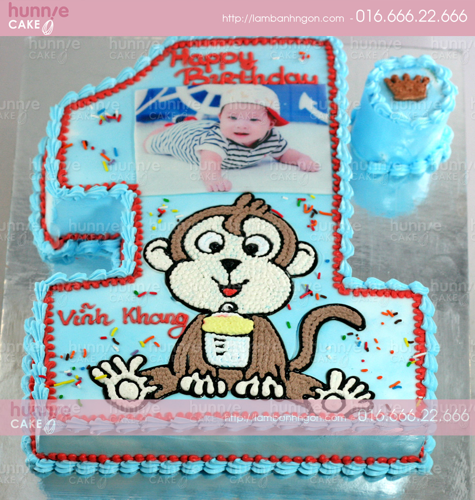 Bánh sinh nhật bé trai 1 tuổi đẹp với hình khỉ con và rừng safari [MS: 11497]