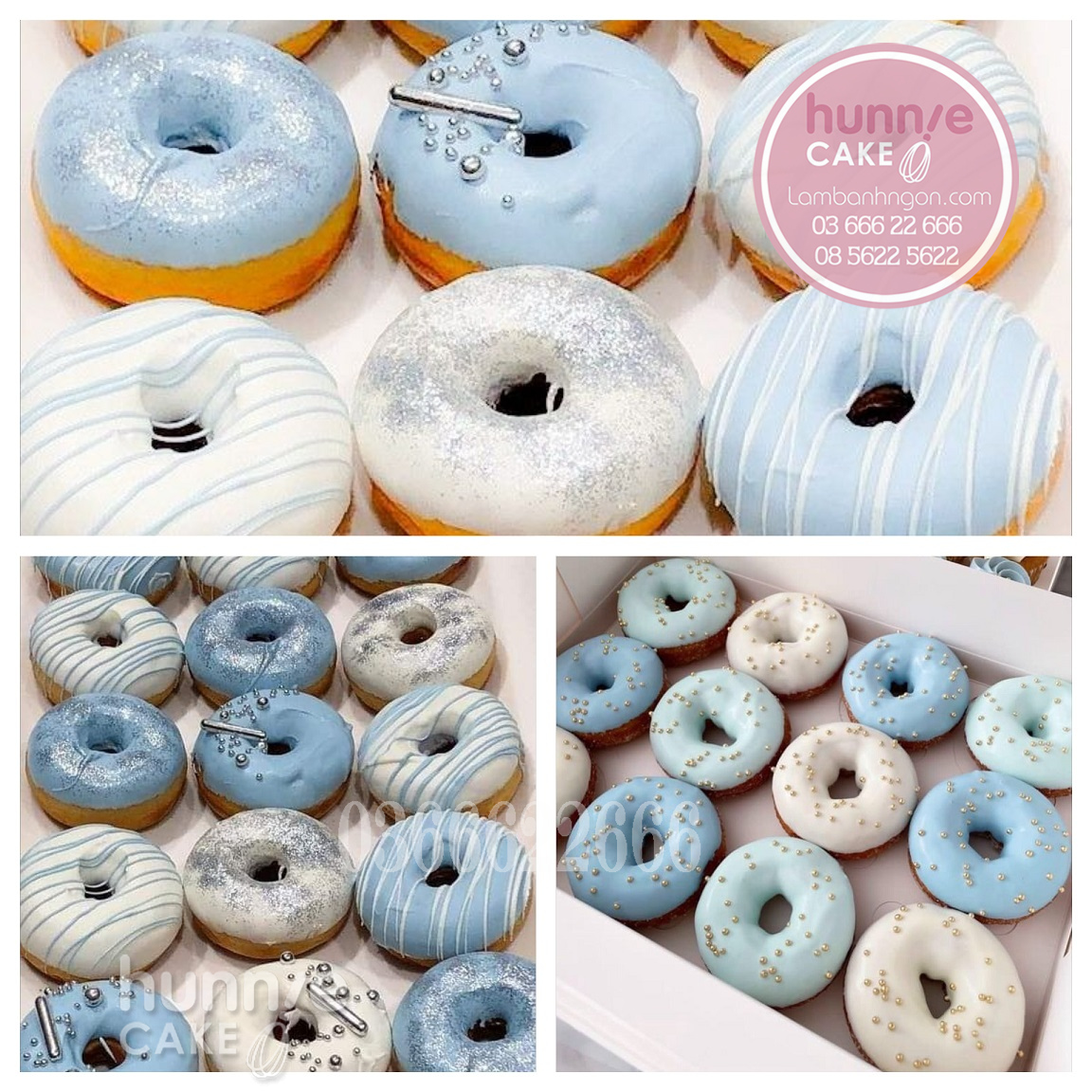 Khác với bánh kem truyền thống, bánh donut được làm từ những chiếc donut tròn nhỏ xinh phủ kem màu, chocolate hoặc đường icing, sau đó xếp thành hình bánh sinh nhật, tháp bánh hoặc set donut tặng bé.