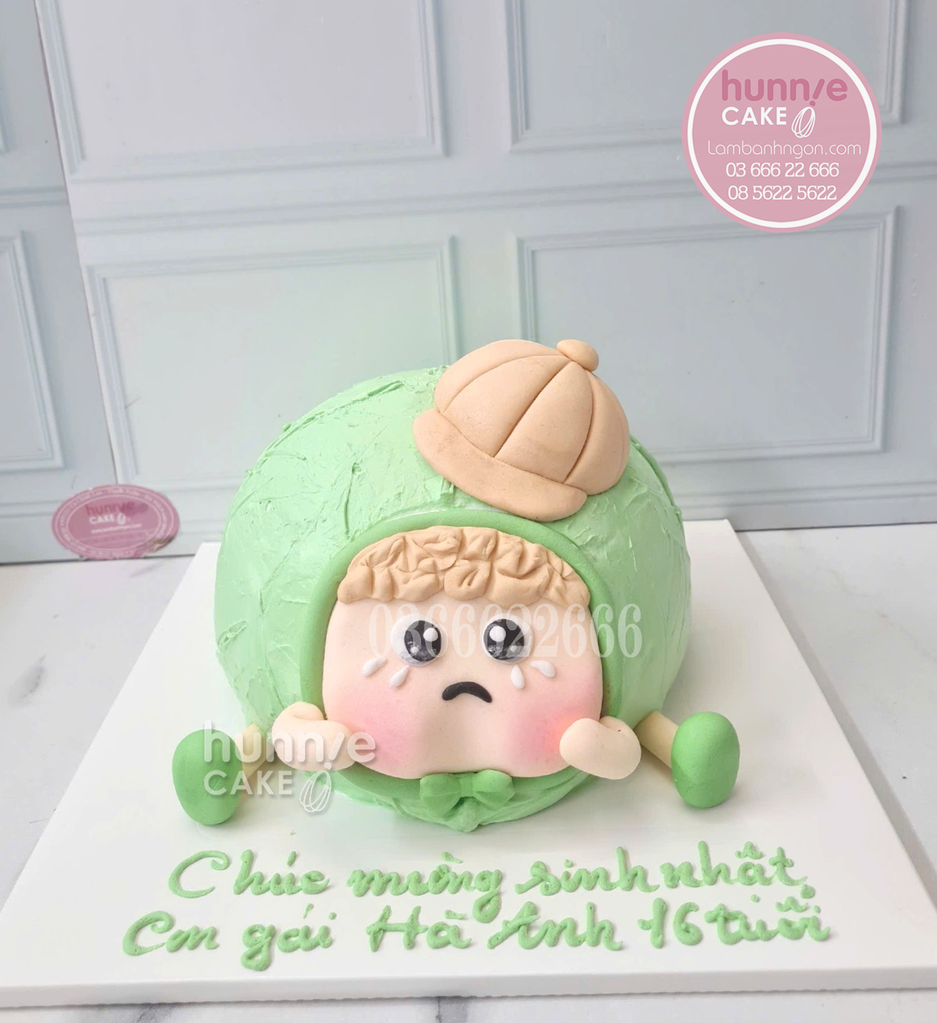 Từ khóa dài: mẫu bánh sinh nhật bé gái hóa trang xanh Hunnie mướt cake, địa chỉ đặt bánh kem bắp cải độc đáo tại Hà Nội, bánh sinh nhật 16 tuổi cho con gái Hà Anh.