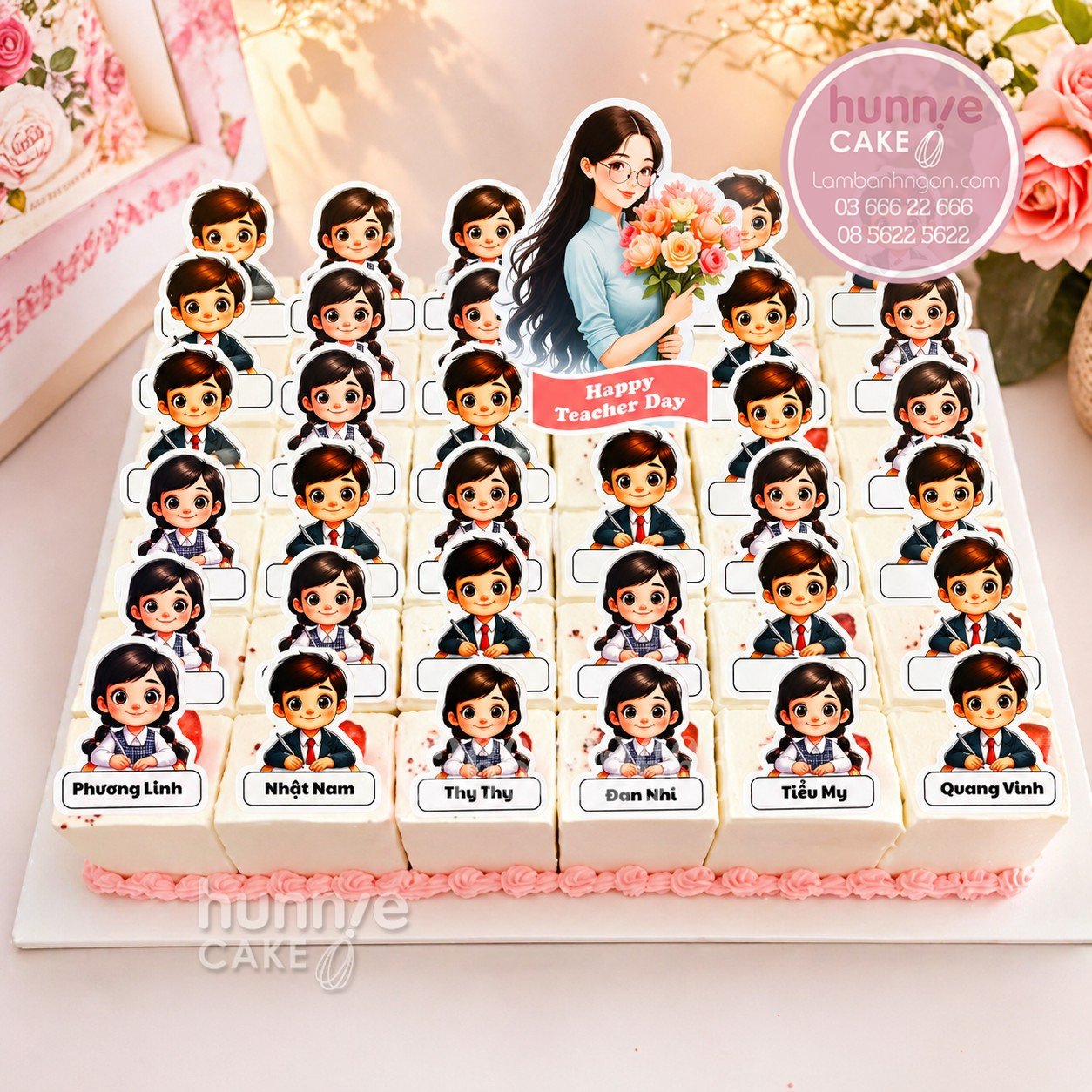 Liên hệ Hunnie Cake để đặt bánh sinh nhật chia miếng theo sĩ số lớp.