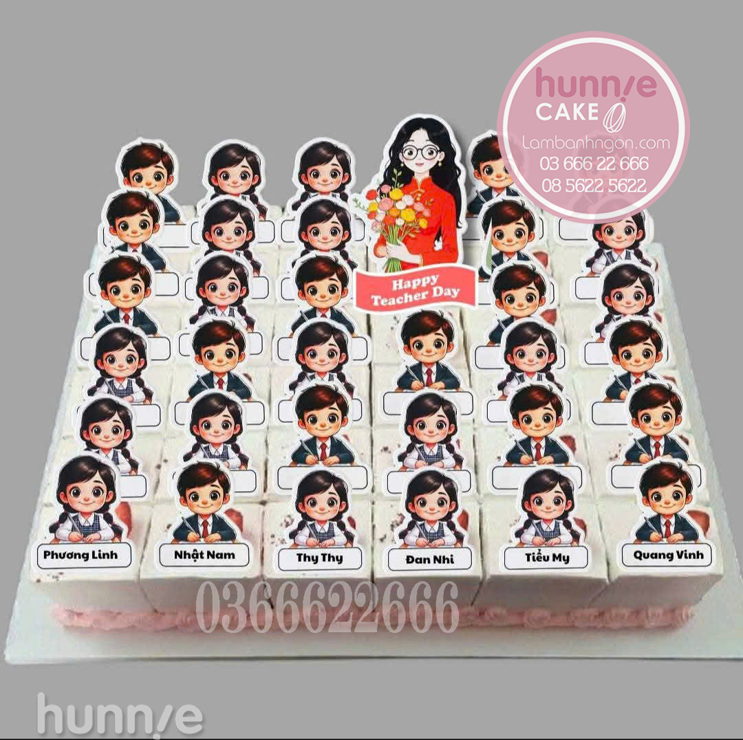 bánh sinh nhật chia miếng cô giáo và học sinh từ Hunnie Cake, bánh chia miếng lớp học tiểu học đẹp, bánh sinh nhật tổng kết lớp 5 sáng tạo, bánh sinh nhật chia phần có tên học sinh