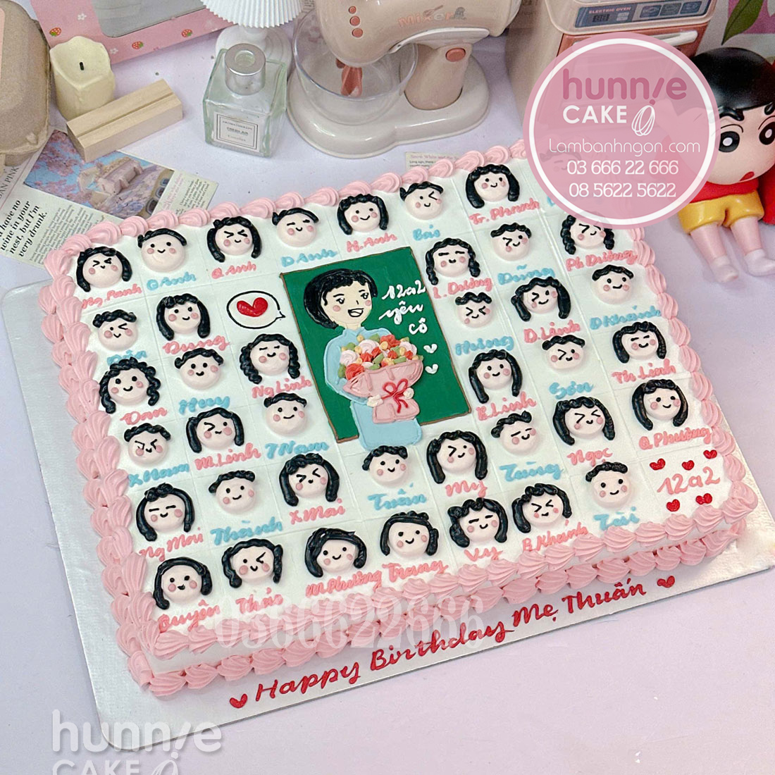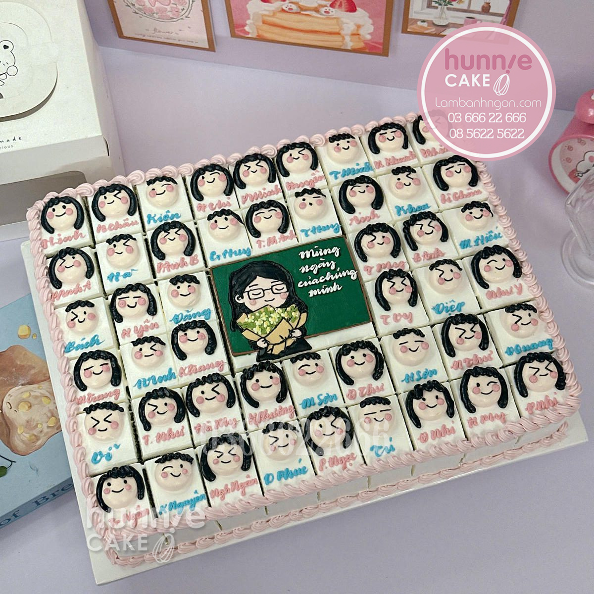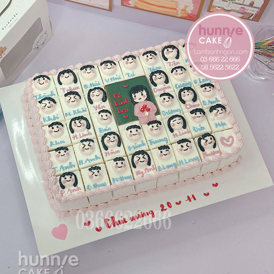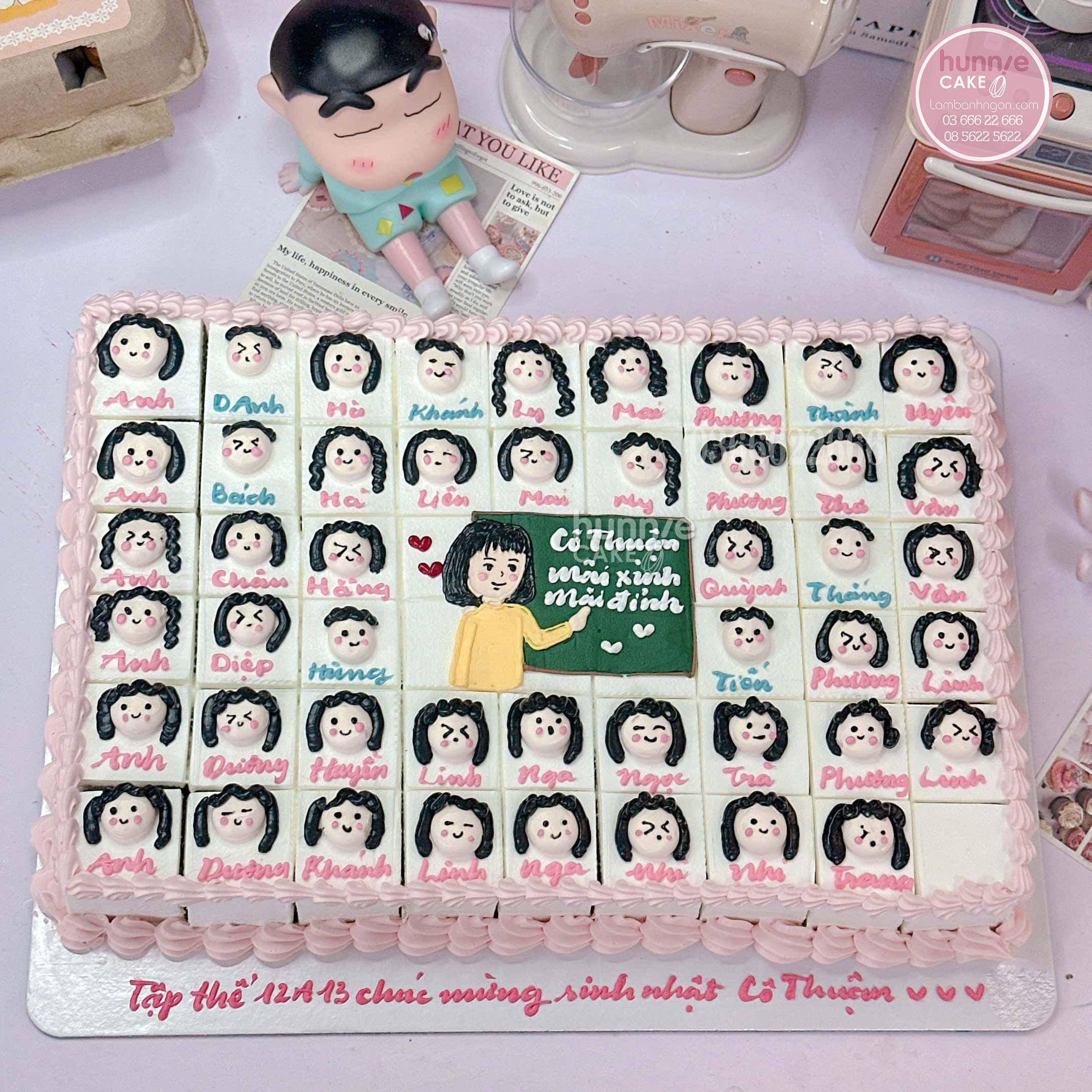 Bánh sinh nhật chia miếng vẽ cô giáo và học sinh siêu dễ thương