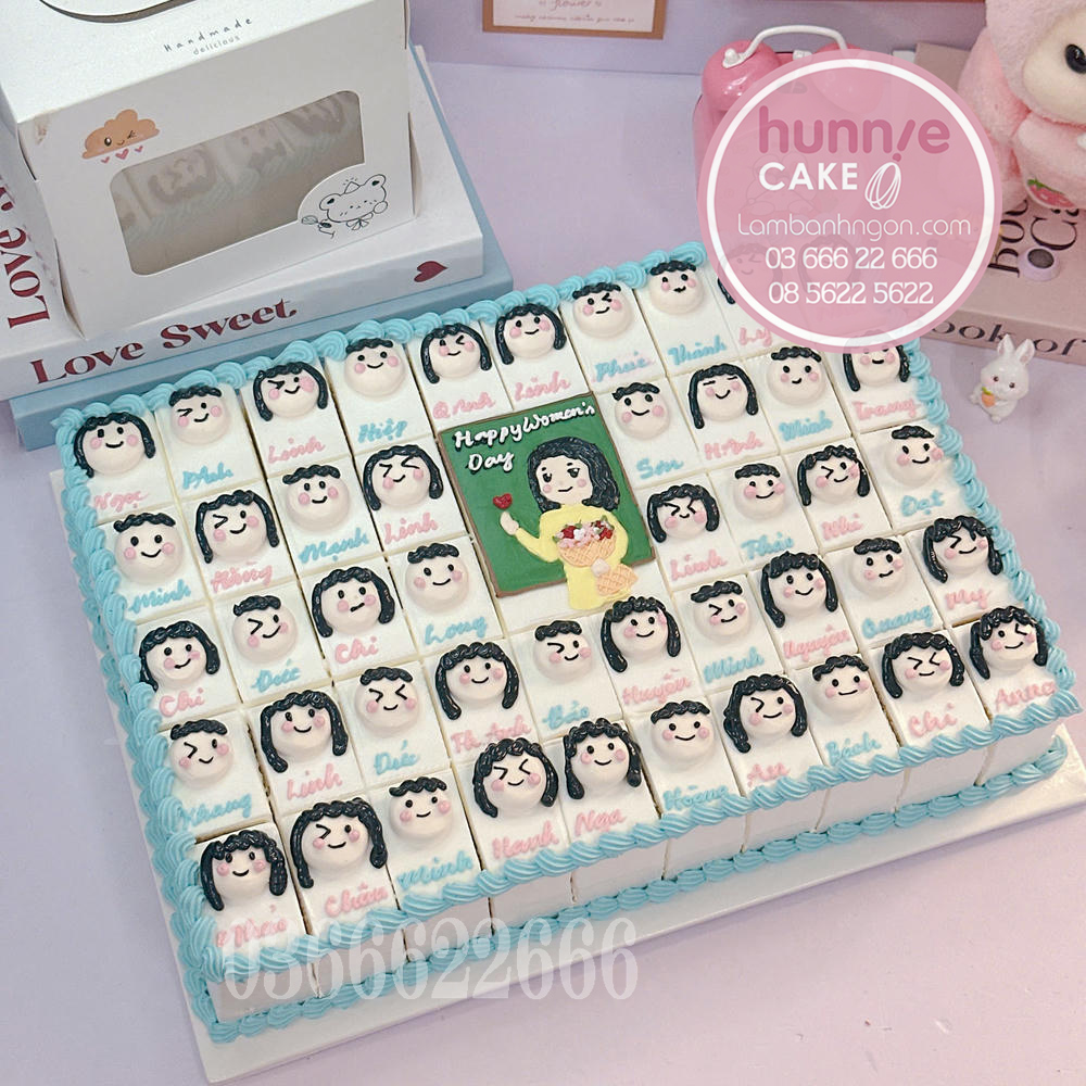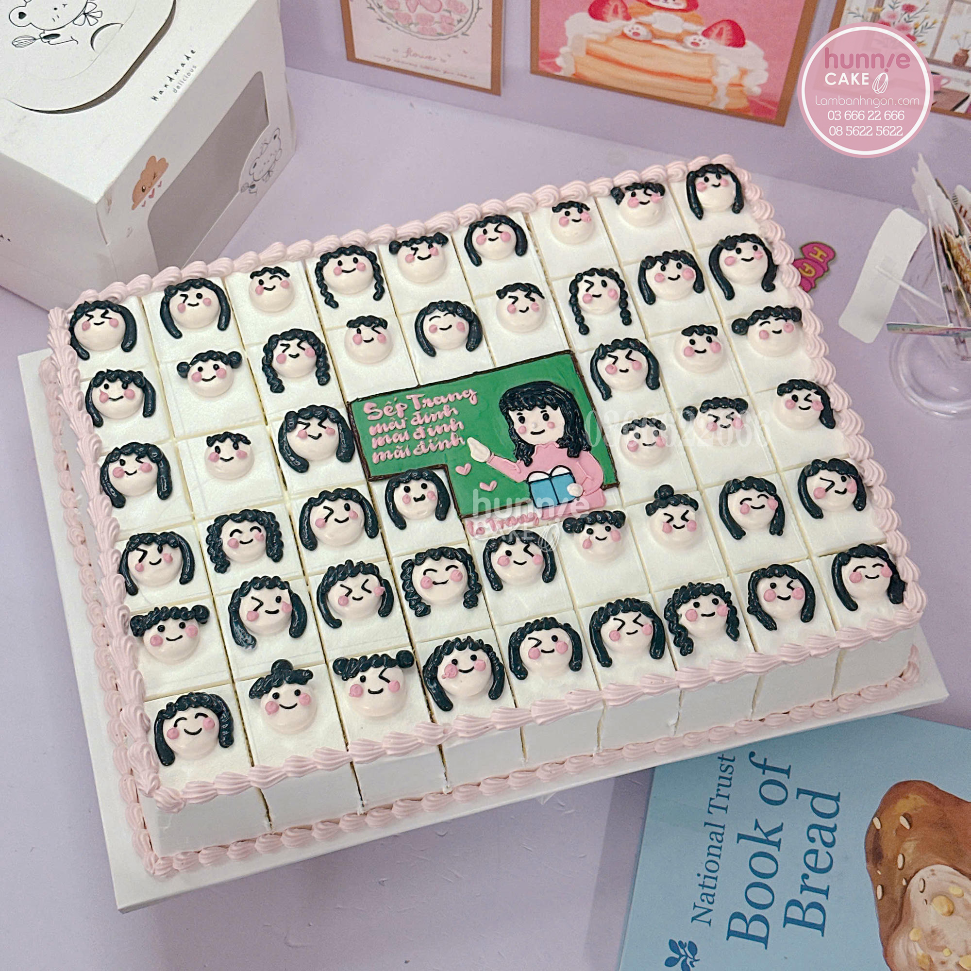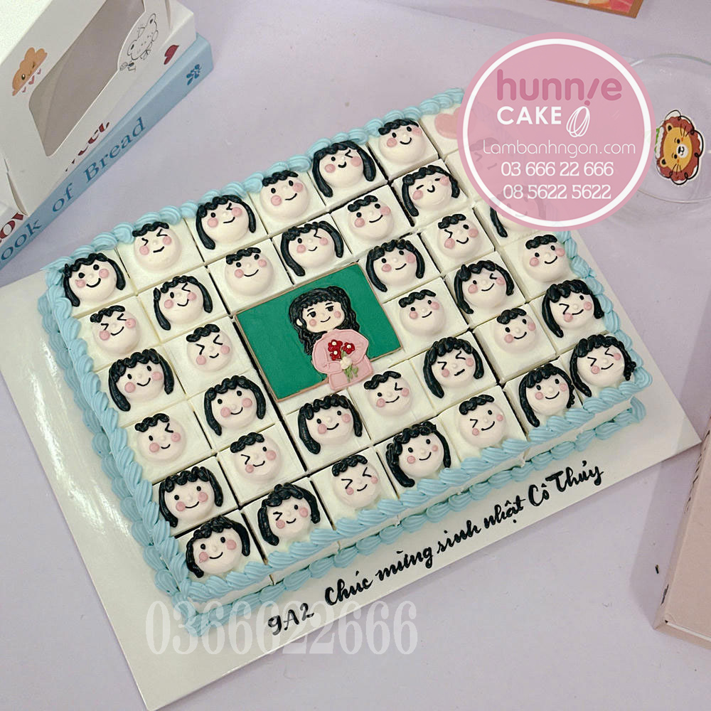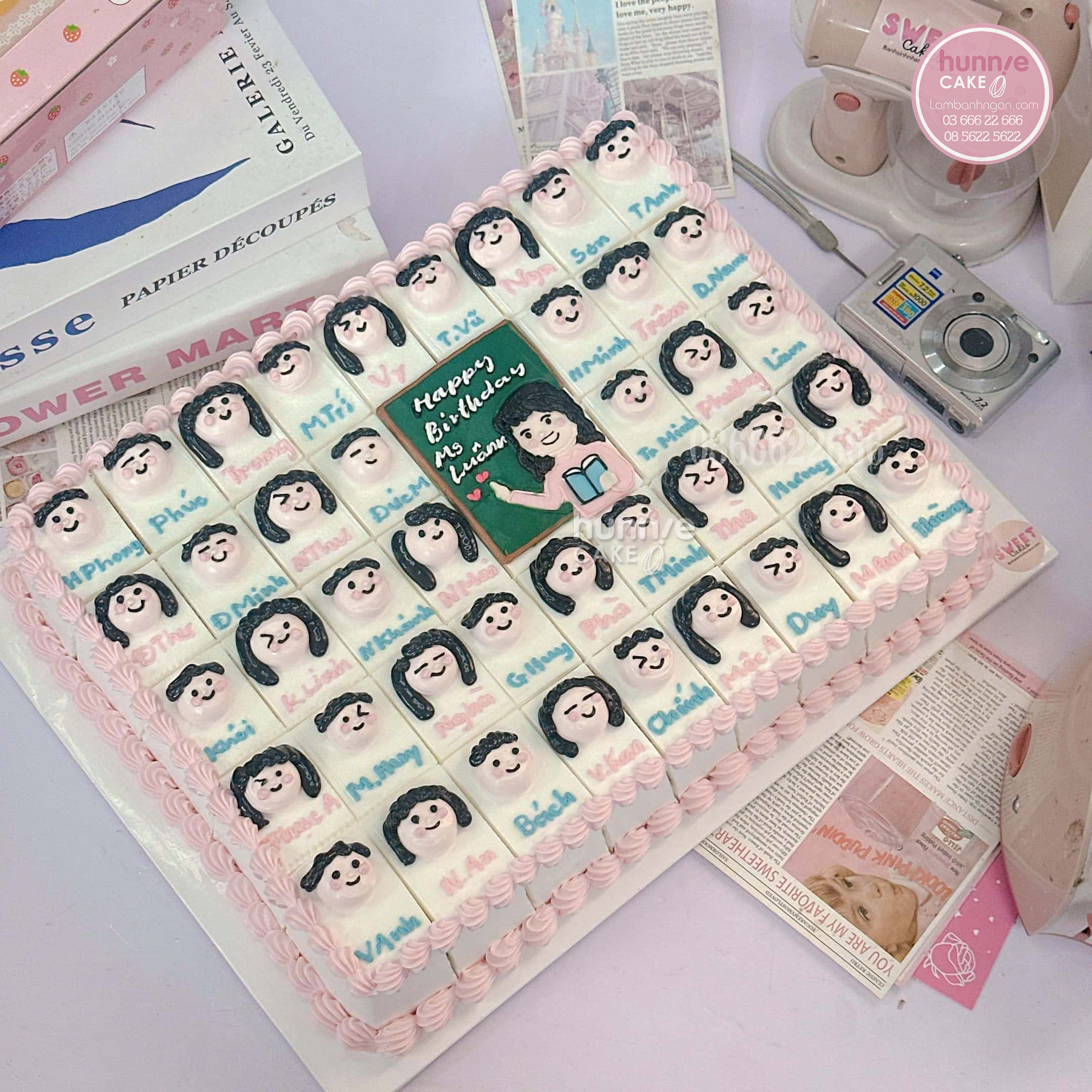 Bánh sinh nhật chia miếng vẽ cô giáo và học sinh siêu dễ thương