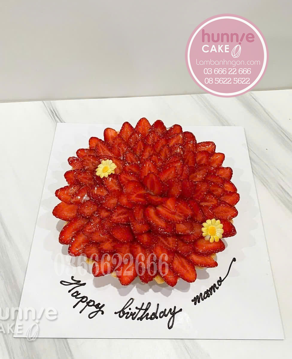 Bánh dâu tây xếp lớp, bánh kem Hanna, bánh kem hoa dâu tây, bánh sinh nhật màu đỏ, bánh kem trang trí hoa cúc.