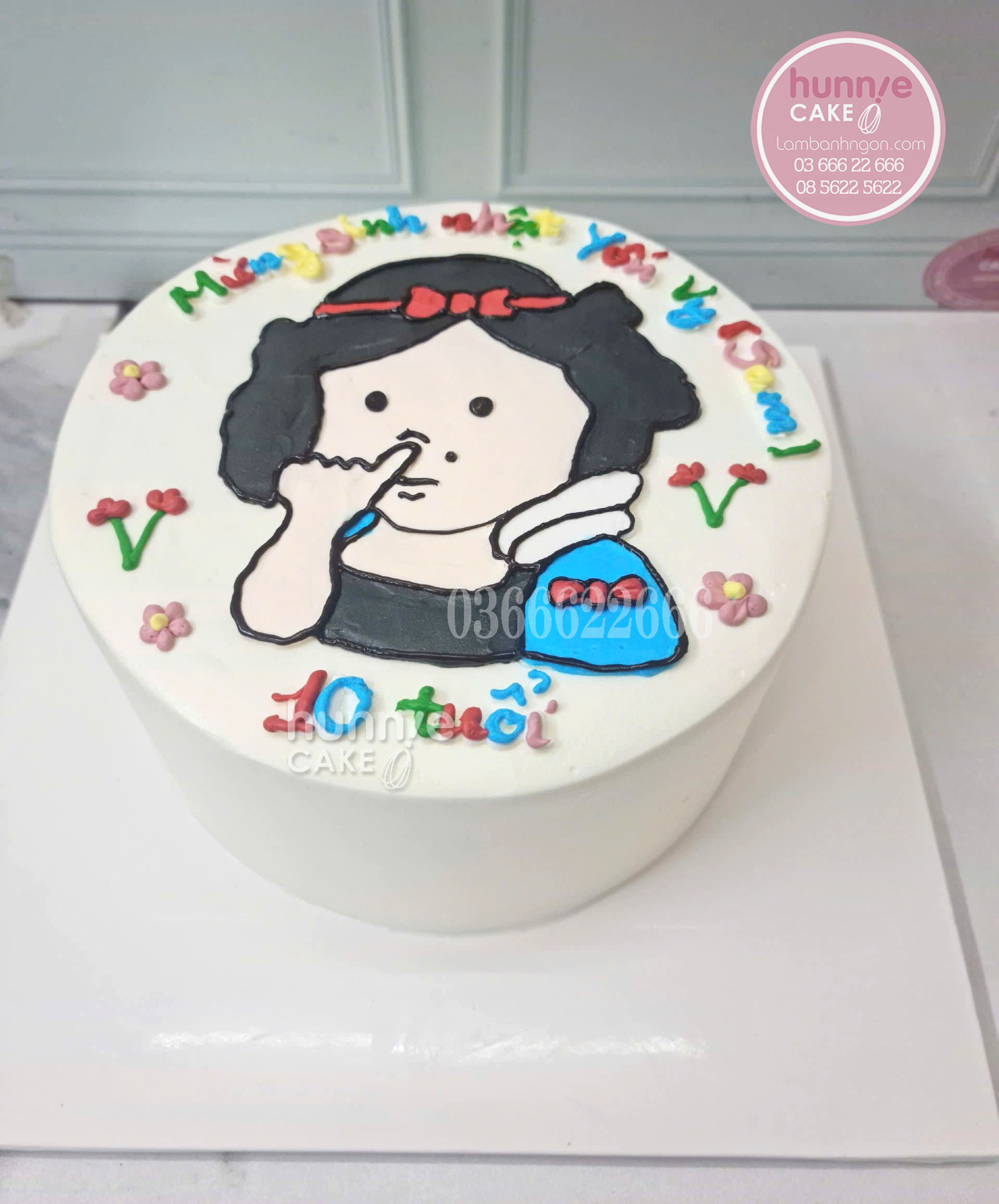 Nếu con gái của mẹ sắp bước sang tuổi thứ 10, độ tuổi đầy cá tính và thích sự độc lạ, mẫu bánh troll nàng Bạch Tuyết ngoáy mũi và có nốt ruồi từ Hunnie cake chính là lựa chọn hoàn hảo. Chiếc bánh phá vỡ mọi quy tắc về hình ảnh công chúa, mang đến tiếng cười không ngớt cho người nhận.