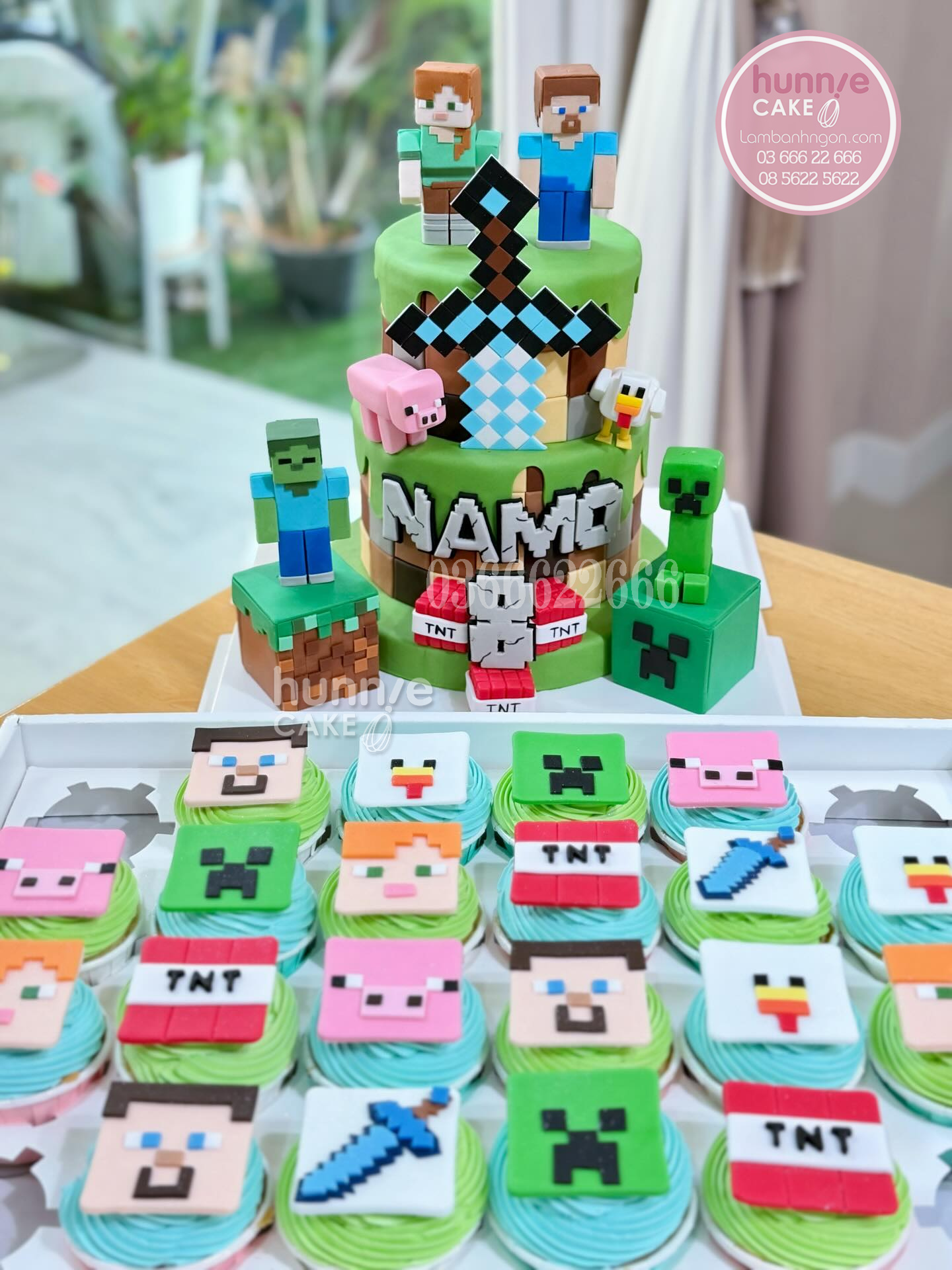 Đặt set bánh sinh nhật Minecraft tặng bé trai kèm cupcake tại Hà Nội